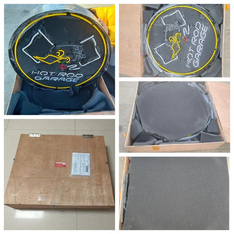 For big dimension of neon sign, we also used foams to fill the glass tubes, then we will put it in a plywood case.